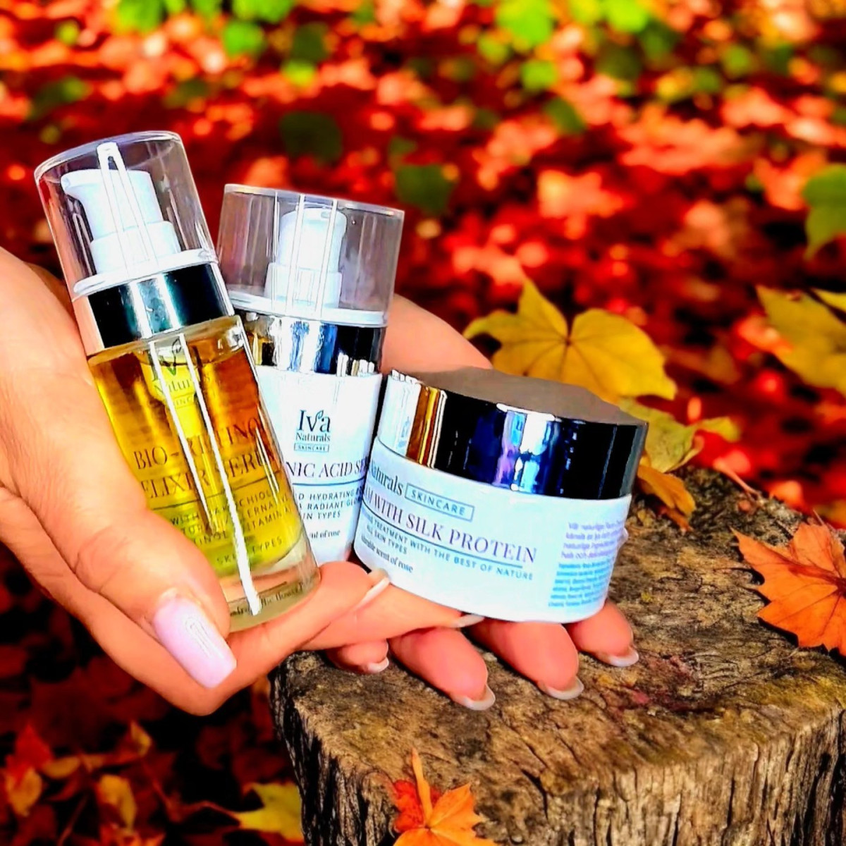 Hos IvaNaturals hittar du hudvårdsprodukter som passar perfekt för höstens klimat. Våra produkter är tillverkade med naturliga ingredienser som inte bara vårdar din hud utan även smälter in harmoniskt med den vackra höstomgivningen. Oavsett om du är ute på en promenad bland färgsprakande löv eller njuter av en lugn kväll inomhus, är våra hudvårdsprodukter det perfekta komplementet till din dagliga rutin.